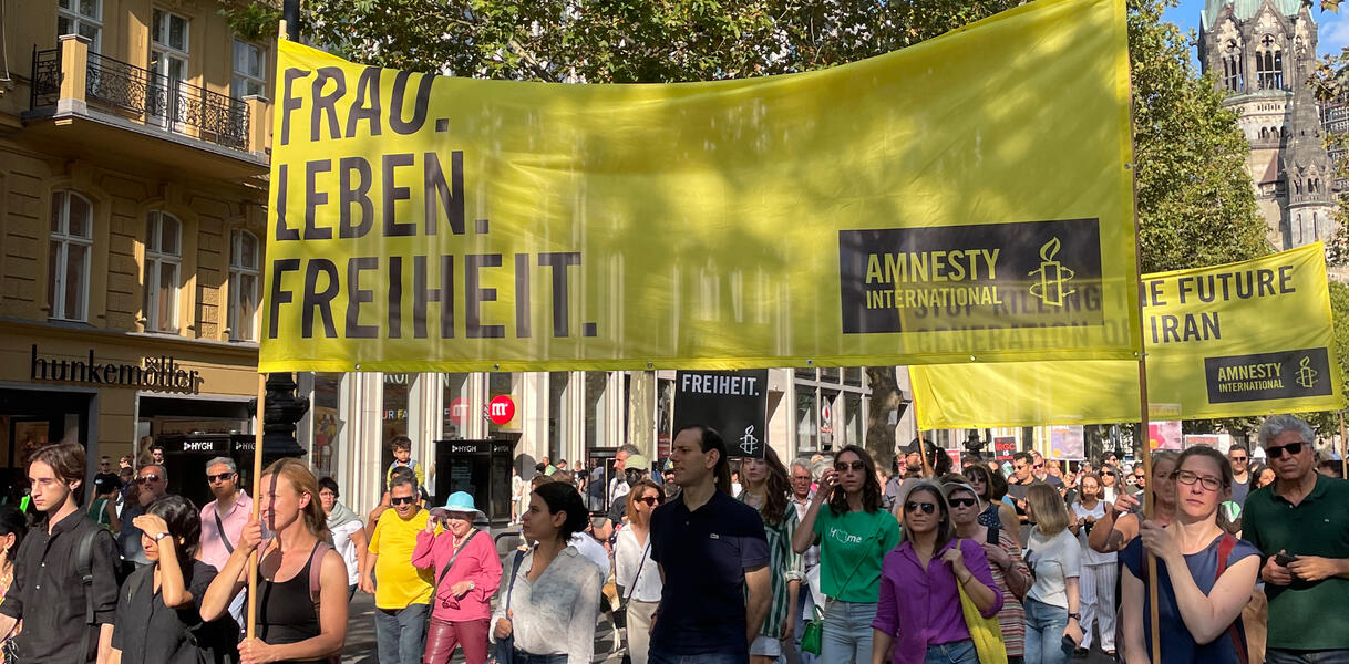 Amnesty-Demonstration in Solidarität mit Frauen und Mädchen im Iran am 16. September 2023 in Berlin