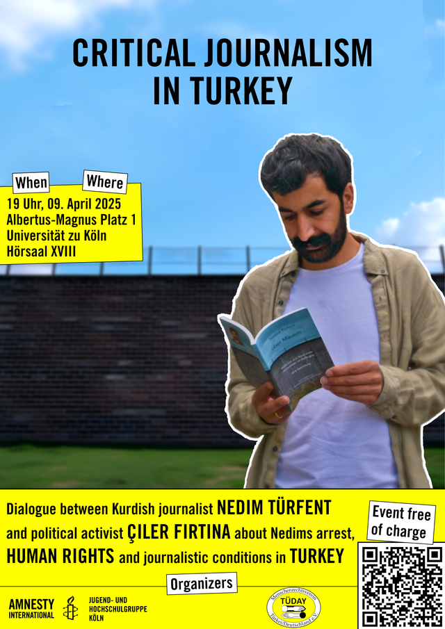 On April 9, 2025, the Amnesty youth & university group Cologne and the human rights association TÜDAY invite to a discussion on a very current issue: Journalism in Turkey.