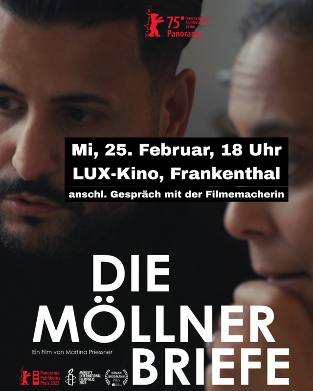 Eine Kooperations-Veranstaltung von LUX-Kinos, Amnesty International Ludwigshafen und dem Frankenthaler Bündnis für Demokratie, Vielfalt und Menschenrechte gegen menschenverachtendes Verhalten.