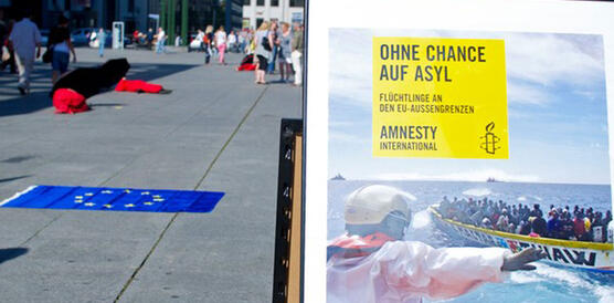 Hart an der Grenze: Die Asylgruppe des Amnesty-Bezirks Berlin-Brandenburg machte am 1. Oktober 2011 auf dem Potsdamer Platz auf die Situation von Flüchtlingen an den europäischen Außengrenzen aufmerksam.