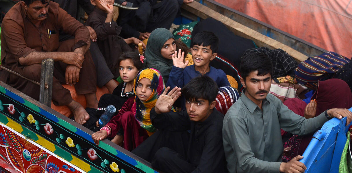 Aus Pakistan abgeschoben: Afghanische Schutzsuchende auf einem Laster am Torkham-Grenzübergang auf dem Weg zurück nach Afghanistan, nachdem sie von der pakistanischen Polizei festgenommen wurden (8. April 2025).