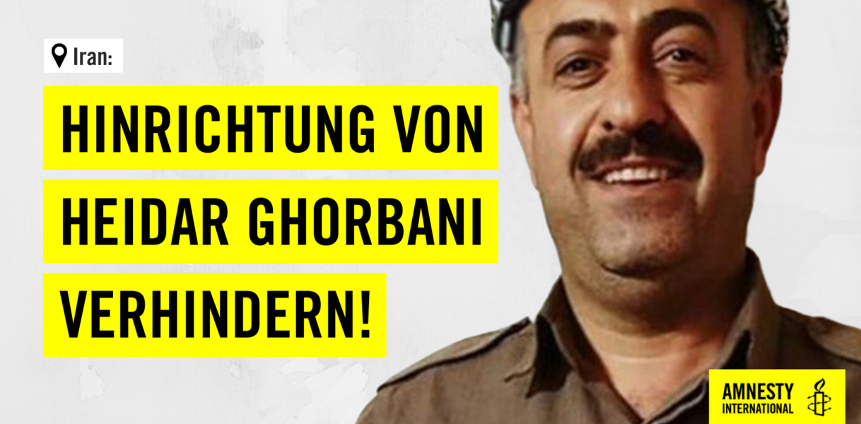 *** Aktualisierung: Am 12. August erfuhr Amnesty International, dass die von Heidar Ghorbanis Rechtsbeiständen eingelegten Rechtsmittel zurückgewiesen wurden. Damit sind alle Rechtsmittel ausgeschöpft und das Todesurteil gilt als rechtskräftig. Bislang wurde noch kein Hinrichtungsdatum festgelegt, doch das Todesurteil kann jederzeit vollstreckt werden. Das müssen wir verhindern! *** Dem iranisch-kurdischen Gefangenen Heidar Ghorbani droht die Hinrichtung wegen "bewaffneter Rebellion gegen den Staat" (baghi), obwohl die internationalen Standards für ein faires Verfahren in seinem Fall schwer verletzt wurden und das Gericht bestätigt hat, dass er nie bewaffnet war. Sein Schuldspruch stützt sich auf "Geständnisse", die unter Folter erzwungen wurden, während er Opfer des Verschwindenlassens war.