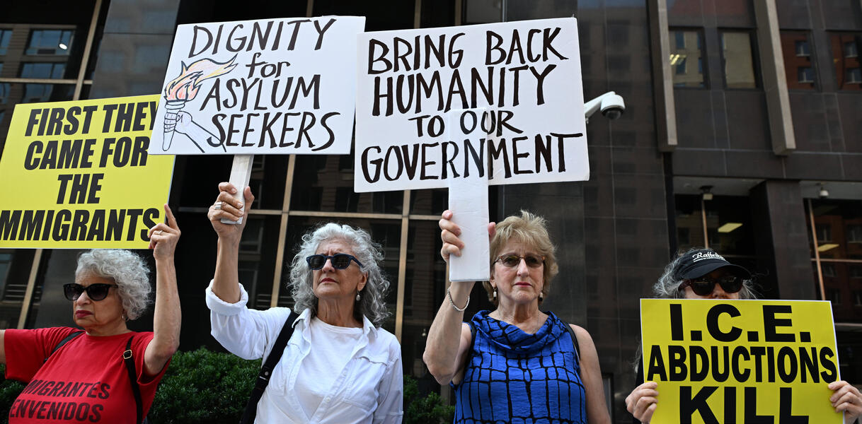 Protestaktion in New York gegen die restriktive Migrations- und Asylpolitik der US-Regierung von Präsident Donald Trump (24. Juli 2025)