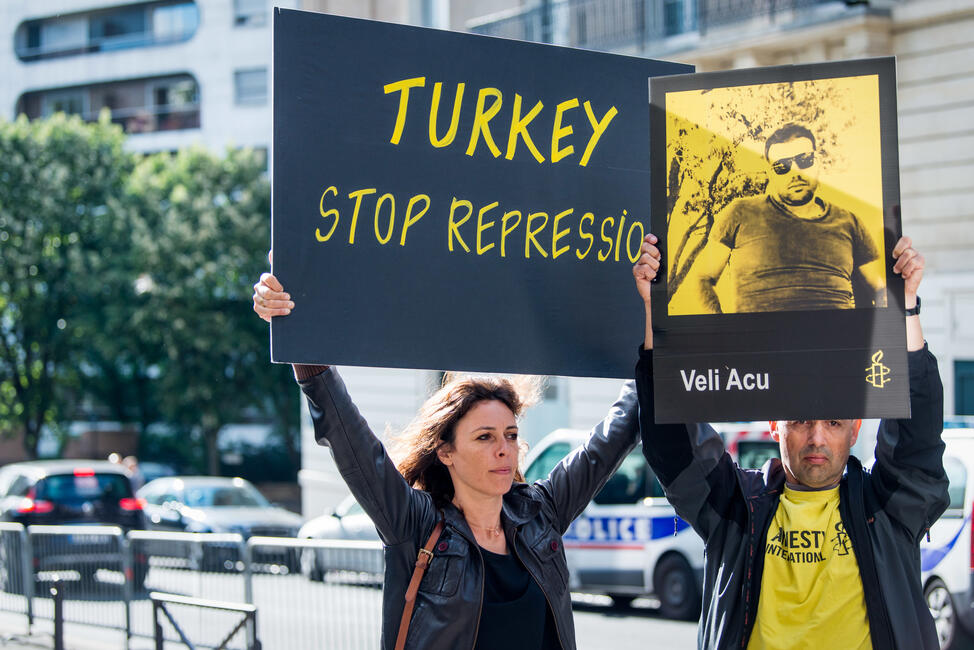 Die türkische Regierung geht weiterhin mit aller Härte gegen die Zivilgesellschaft vor und versucht systematisch, die Arbeit von Menschenrechtsverteidigerinnen und Menschenrechtsverteidigern einzuschränken. Der bestehende Ausnahmezustand wird gezielt dazu genutzt, die Arbeit von tausenden Journalistinnen und Journalisten, Medienschaffenden, Aktivistinnen und Akvisten und Menschenrechtsverteidigerinnen und Menschenrechtsverteidigern einzuschränken. Das zeigt der erschienene Amnesty-Kurzbericht "Weathering the storm: Defending human rights in Turkey’s climate of fear".