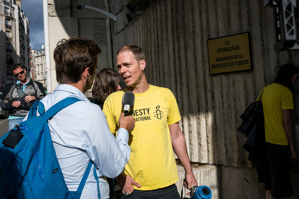 "Die Inhaftierung dieser sechs Menschenrechtlerinnen und Menschenrechtler, unter denen sich auch die Direktorin der türkischen Amnesty-Sektion befindet, hat dafür gesorgt, dass Politikerinnen und Politiker aus aller Welt angesichts der schlimmen menschenrechtlichen Lage in der Türkei endlich ihr Schweigen brechen. Sie haben sich erstaunlich schnell auf eine gemeinsame Linie geeinigt und schlagen ungewohnt vereinte Töne an. Auch für andere politische Entscheidungstragende ist nun der Moment gekommen, sich zu positionieren", so John Dalhuisen, Experte für Europa bei Amnesty International.
