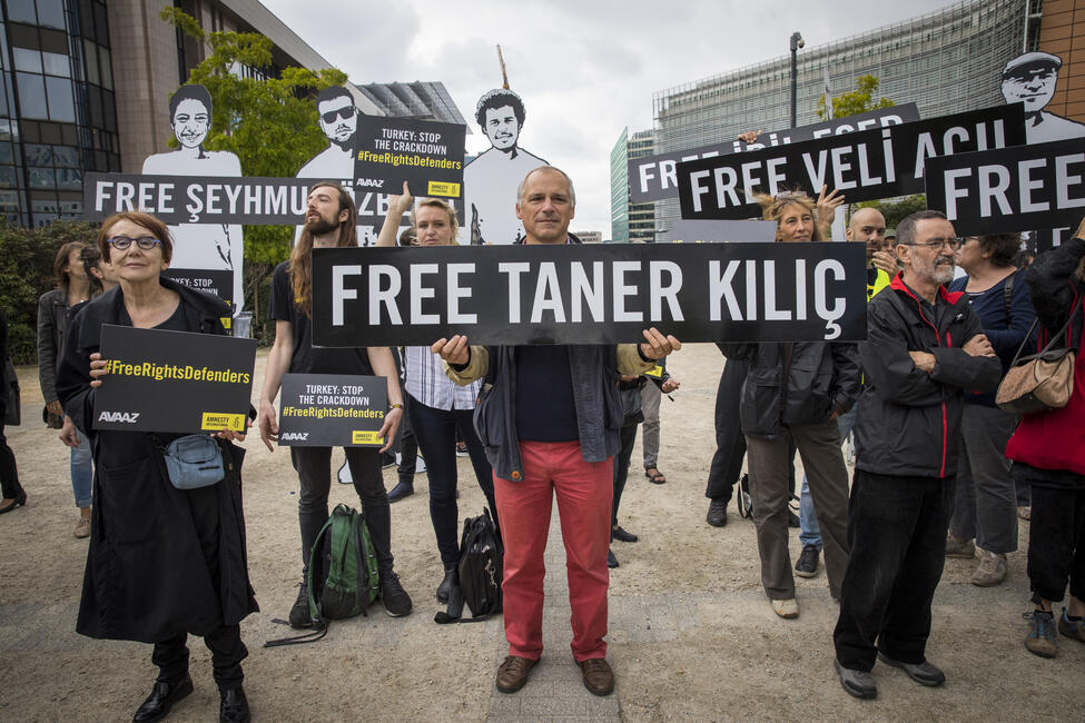 Die systematische Unterdrückung kritischer Stimmen in der Türkei macht auch vor Vertretern von unabhängigen internationalen Organisationen nicht Halt: Taner Kılıç, Ehrenvorsitzender von Amnesty International in der Türkei, wurde am 6. Juni 2017 verhaftet. Drei Tage später, am 9. Juni 2017, ordnete ein Gericht Untersuchungshaft gegen ihn an. Er wurde in ein Gefängnis in Izmir überstellt, in dem er bis heute festgehalten wird. Nachdem ein Gericht in Istanbul am 31. Januar 2018 seine Freilassung angeordnet hatte, wurde diese Entscheidung von demselben Gericht in einer 360-Grad-Wendung keine 24 Stunden später wieder revidiert. Taner Kılıç befindet sich weiterhin in Haft.