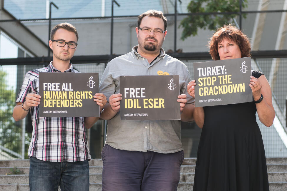 In den vergangenen Tagen haben Unterstützerinnen und Unterstützer in mehr als 30 Ländern die Freilassung von İdil Eser, Taner Kılıç und von allen anderen inhaftierten Menschenrechtsverteidigerinnen und -verteidigern in der Türkei gefordert.