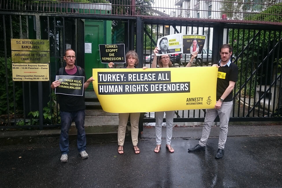 Heute ist der Ehrenvorsitzende der türkischen Amnesty-Sektion, Taner Kılıç, seit einem Jahr in Haft. Für den zugrunde liegenden Vorwurf der "Mitgliedschaft in einer Terrororganisation" kann die Staatsanwaltschaft nach wie vor keinerlei Beweise vorlegen – dennoch hält sie unter fadenscheinigen Gründen an der Anklage fest. Am 21. Juni wird der Prozess gegen Taner Kılıç und zehn weitere Menschenrechtsverteidiger fortgesetzt.