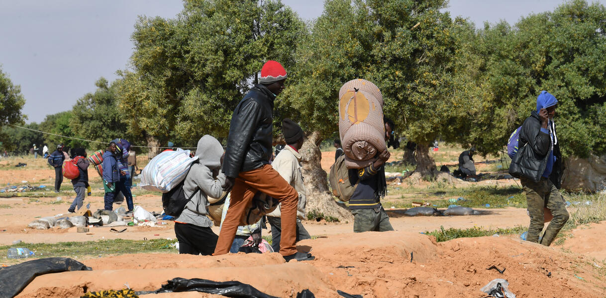 Vertreibung aus al-Amra: Migrant*innen müssen ihr Lager in al-Amra, Tunesien, am 5. April 2025 verlassen, nachdem die tunesischen Behörden mit der Räumung begonnen hatten.